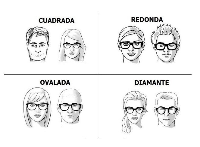 Lo primero que debes saber, es que la clasificación de los tipos de Caras relacionados a la elección del marco de lentes ópticos: Define 4 y sólo 4 formas de rostros, las cuales son comunes para hombres y mujeres. Lo diré nuevamente, para mayor claridad: "los tipos de rostros para la elección del lente óptico se clasifican exclusivamente en 4 formas"